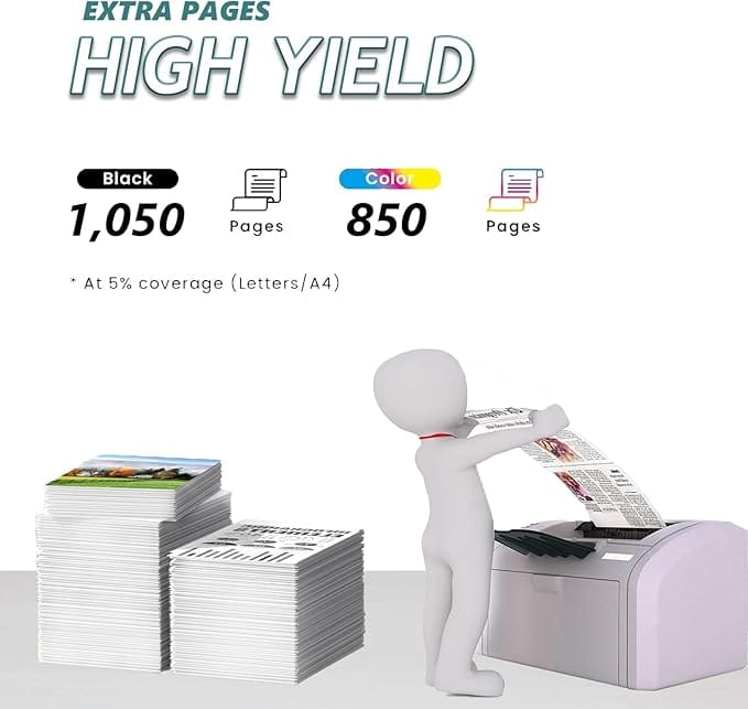 • High Yield: Printing 1,050 pages for HP 216A W2410A black replacement toner cartridge & 850 pages for W2411A cyan/ W2413A magenta/ W2412A yellow(5% coverage/A4 paper)