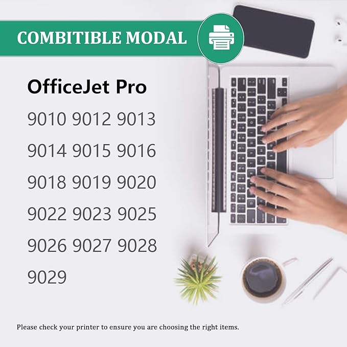 Fully compatible with HP OfficeJet Pro 9010, OfficeJet Pro 9012, OfficeJet Pro 9013, OfficeJet Pro 9014, OfficeJet Pro 9015, OfficeJet Pro 9016, OfficeJet Pro 9019, OfficeJet Pro 9020, OfficeJet Pro 9022, OfficeJet 9023 and Pro 9025 printers.